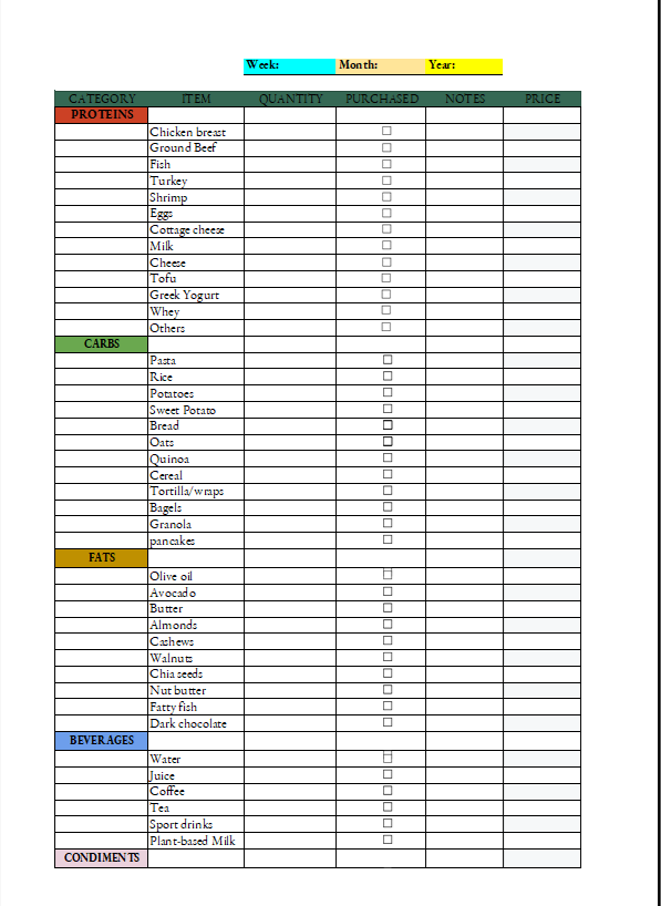 • Cadeau : Planner (Liste de courses) Tableau Excel/ PDF Imprimable